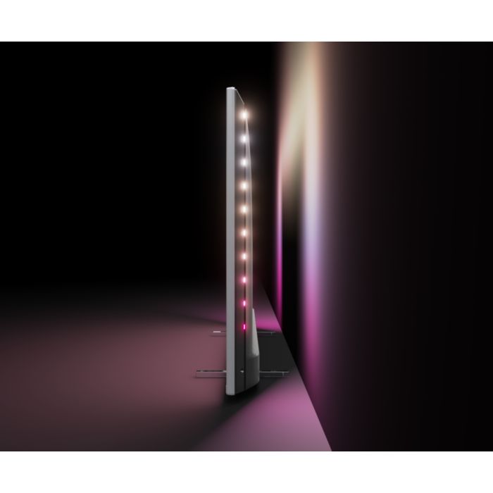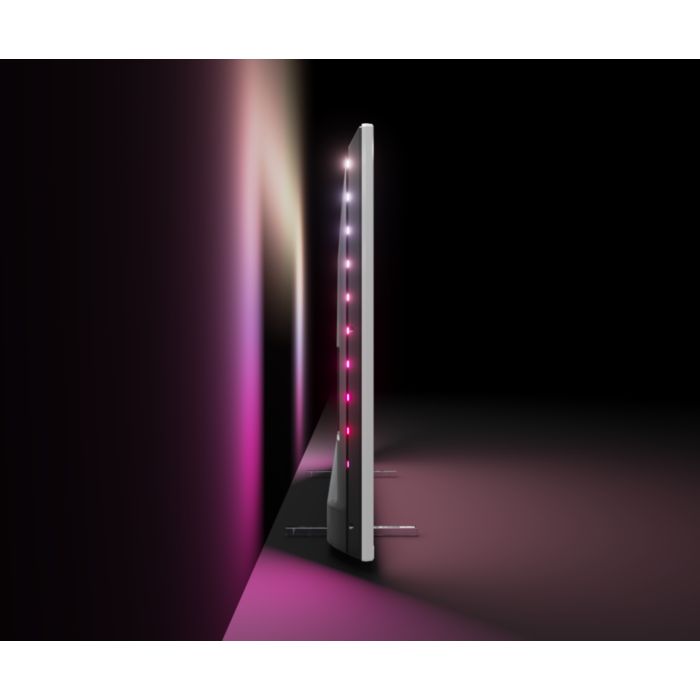 Z osvetlitvijo Philips Ambilight filmi in igrice postanejo pristnejši. Glasba dobi svetlobno predstavo. Vaš zaslon se vam bo poleg tega zdel večji kot v resnici. Inteligentne sijalke LED okrog robov televizorja projicirajo barve zaslona na stene in v prostor v realnem času. Ambientalna osvetlitev je vedno popolno prilagojena. Še en razlog, da vas vaš televizor navdušuje.