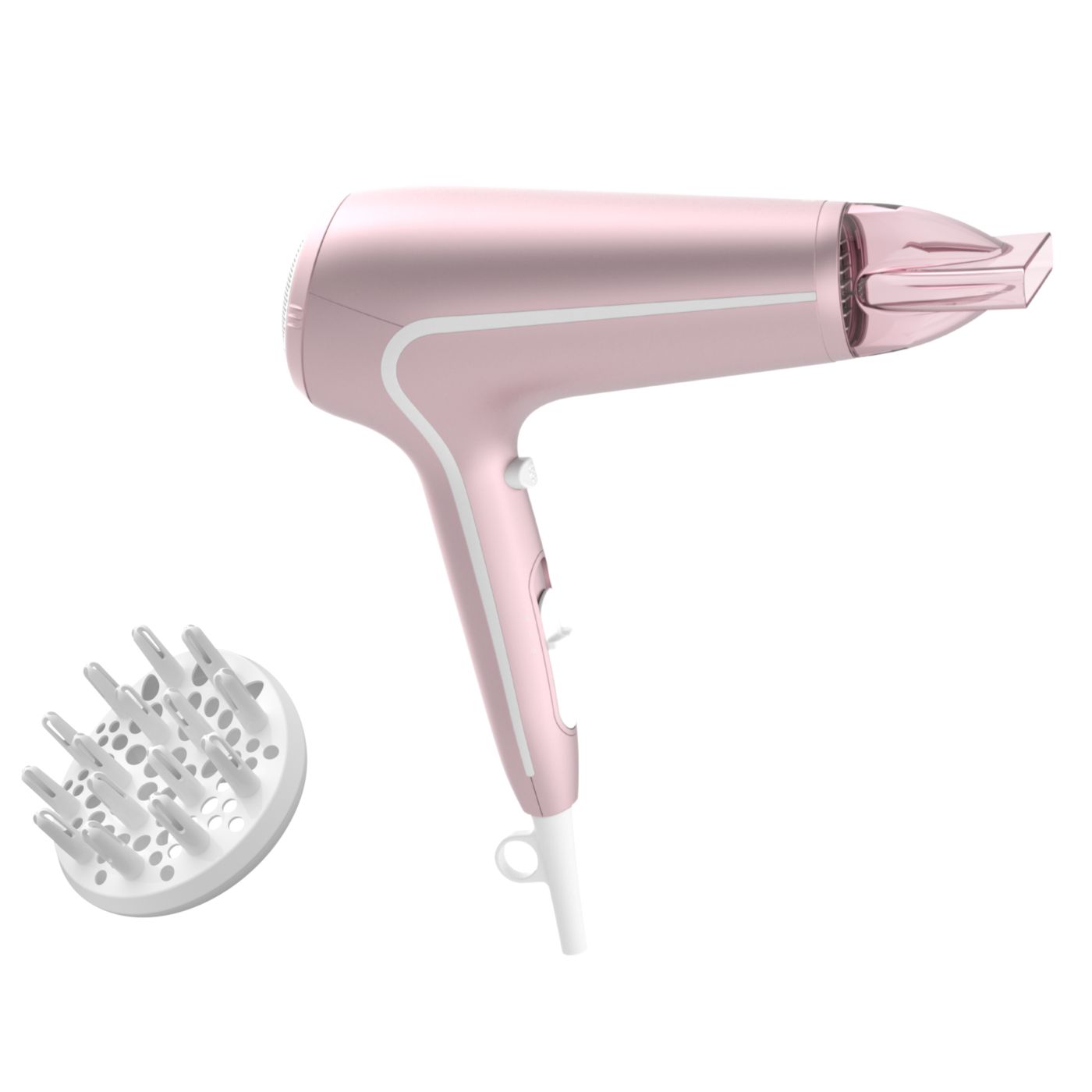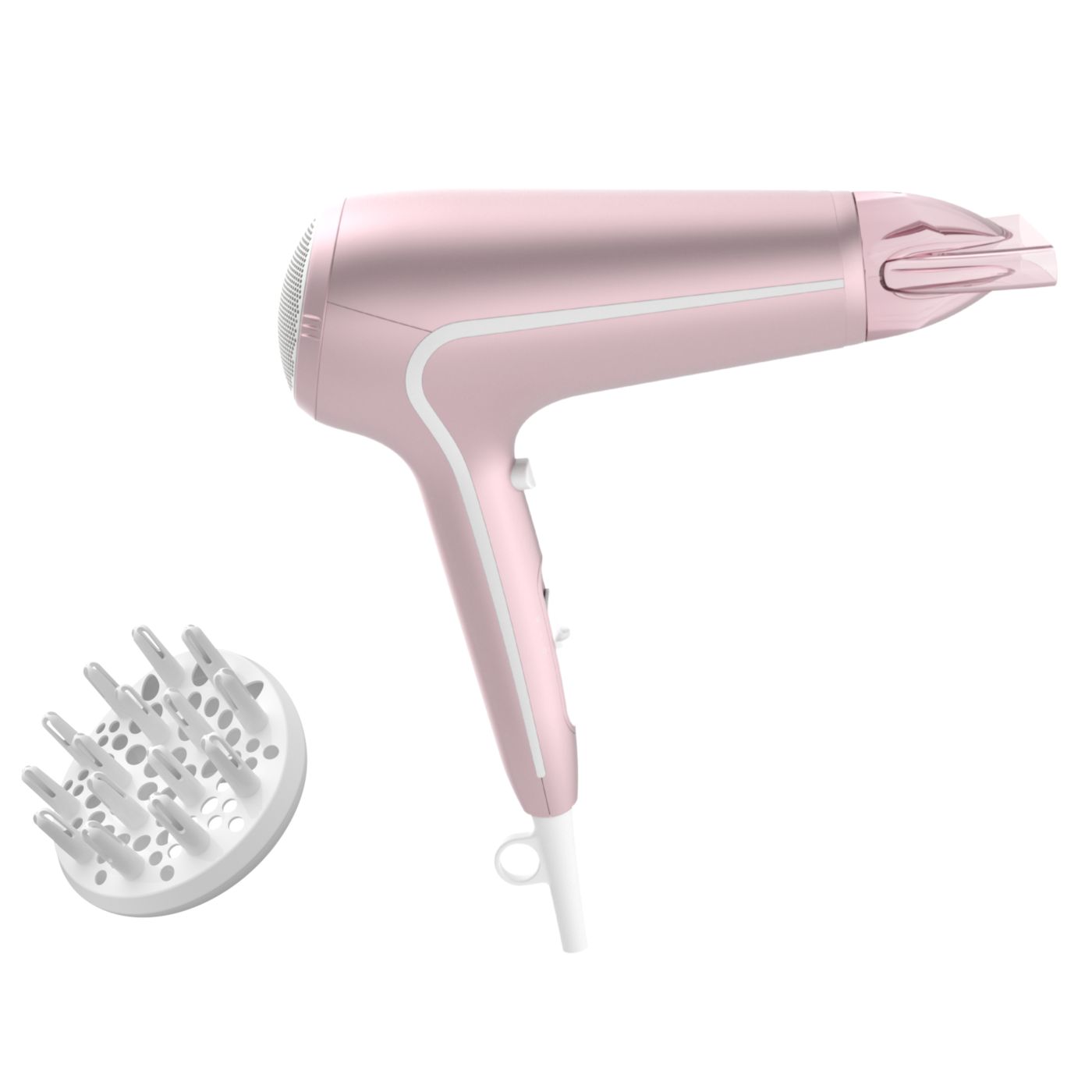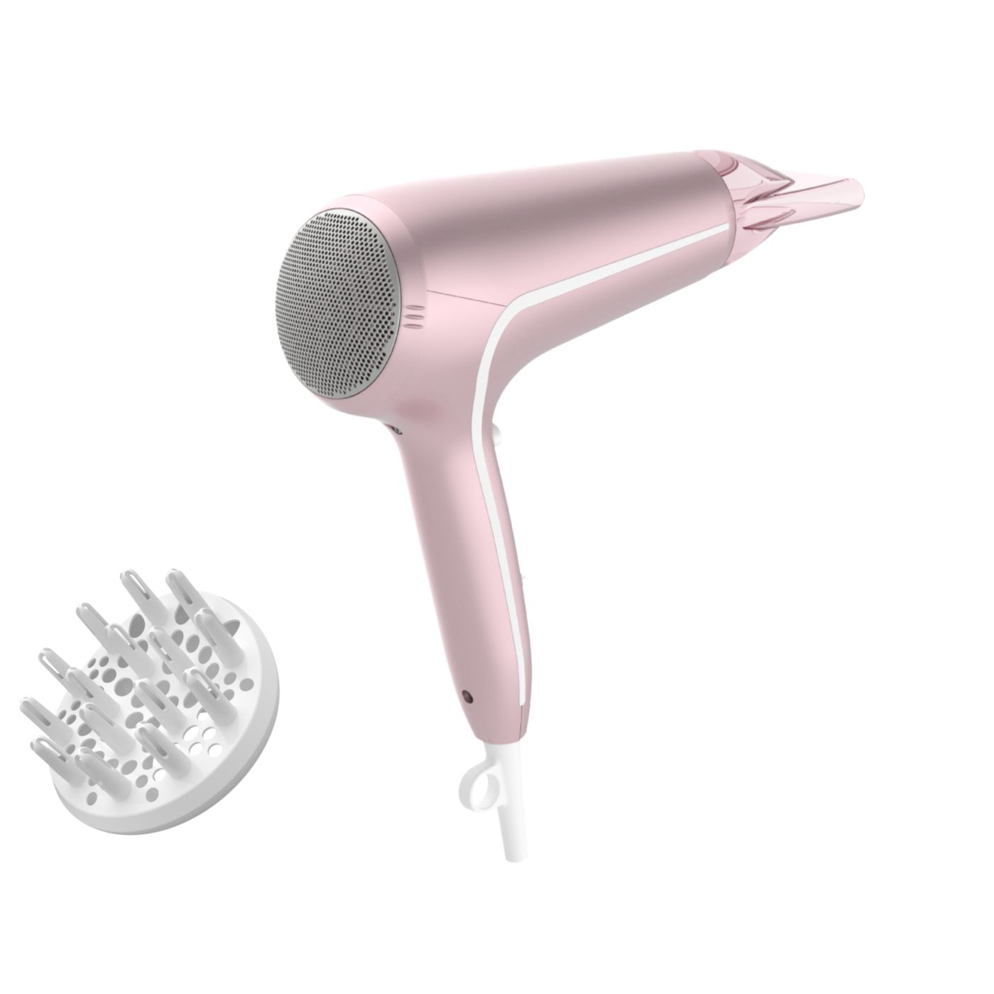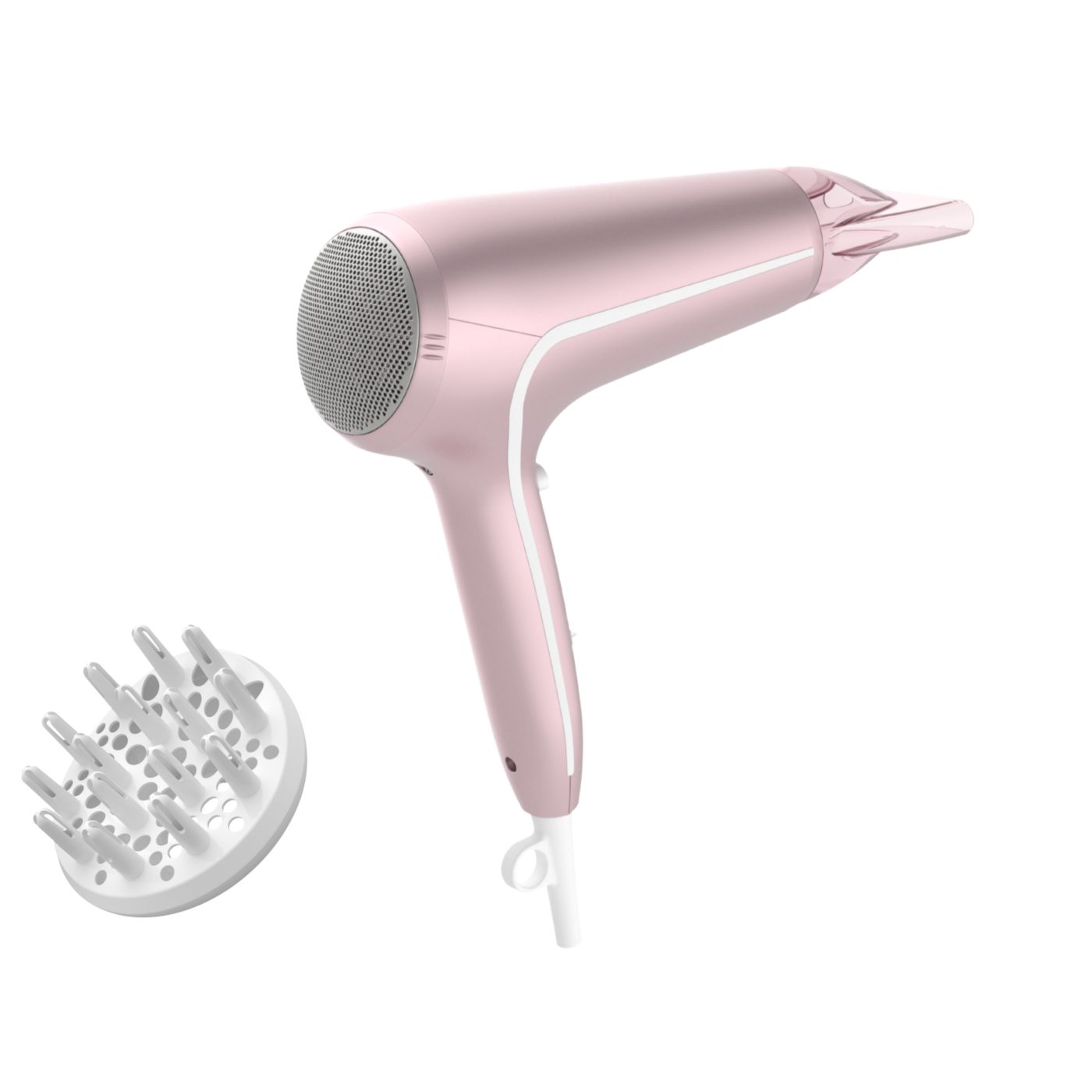 Sušilnik za lase predstavlja sodoben in prefinjen pristop k zasnovi. Mehke in tekoče linije ter podaljšani deli prefinjeno izražajo ženstvenost, izpopolnjena zasnova in visokokakovostni materiali pa dokazujejo vrhunsko zmogljivost izdelka.