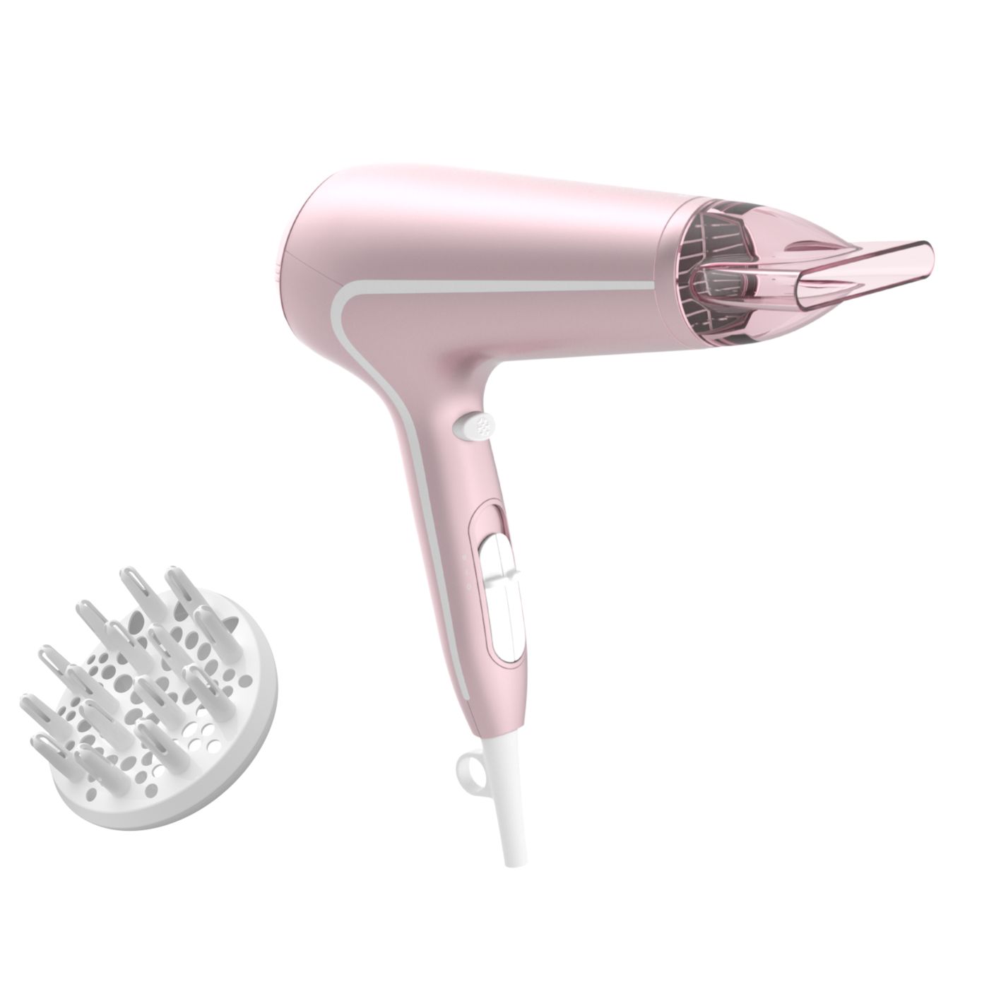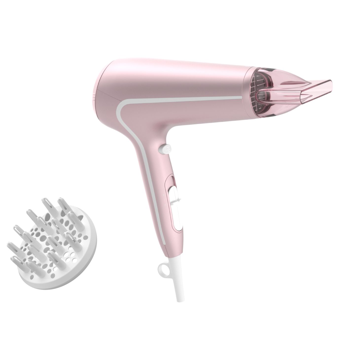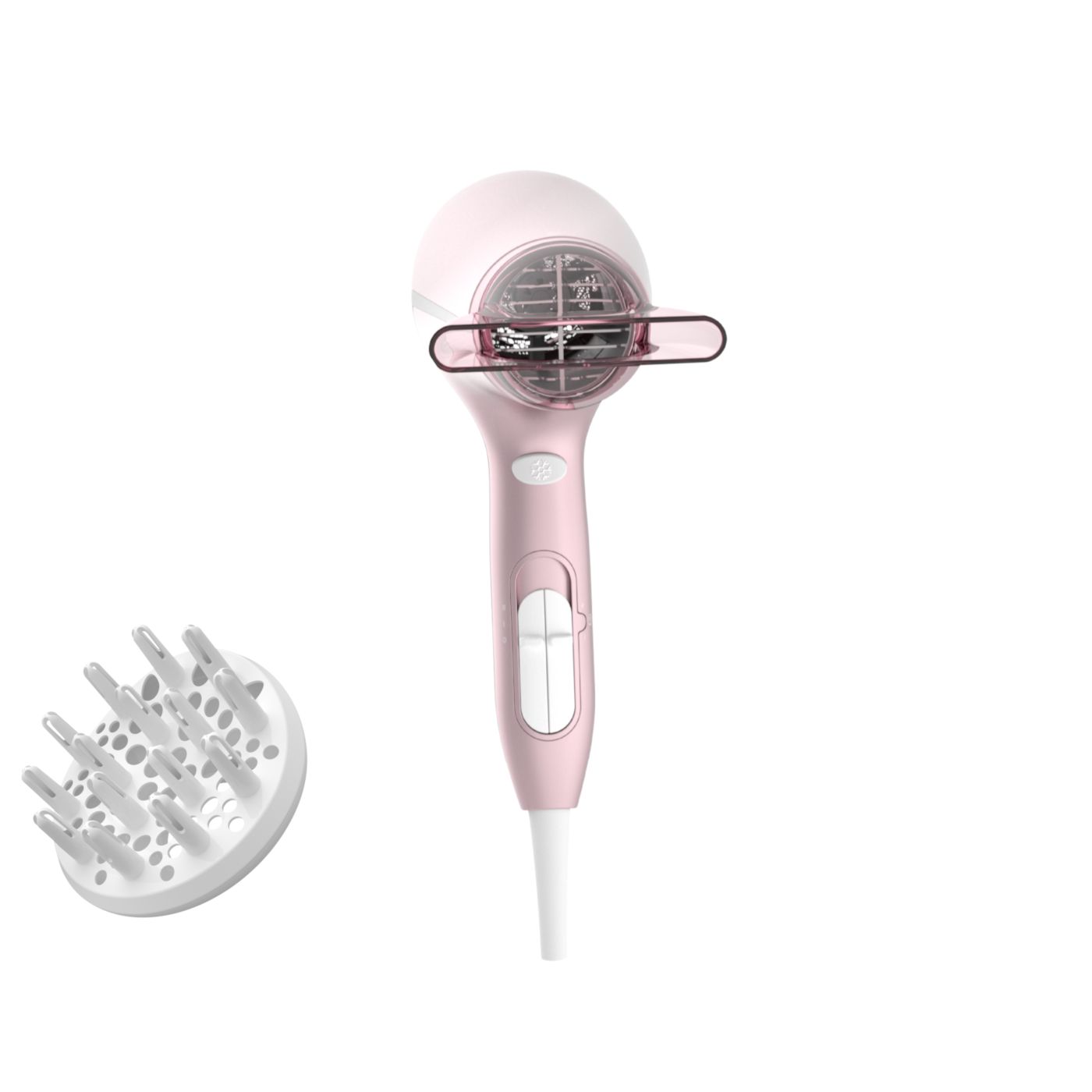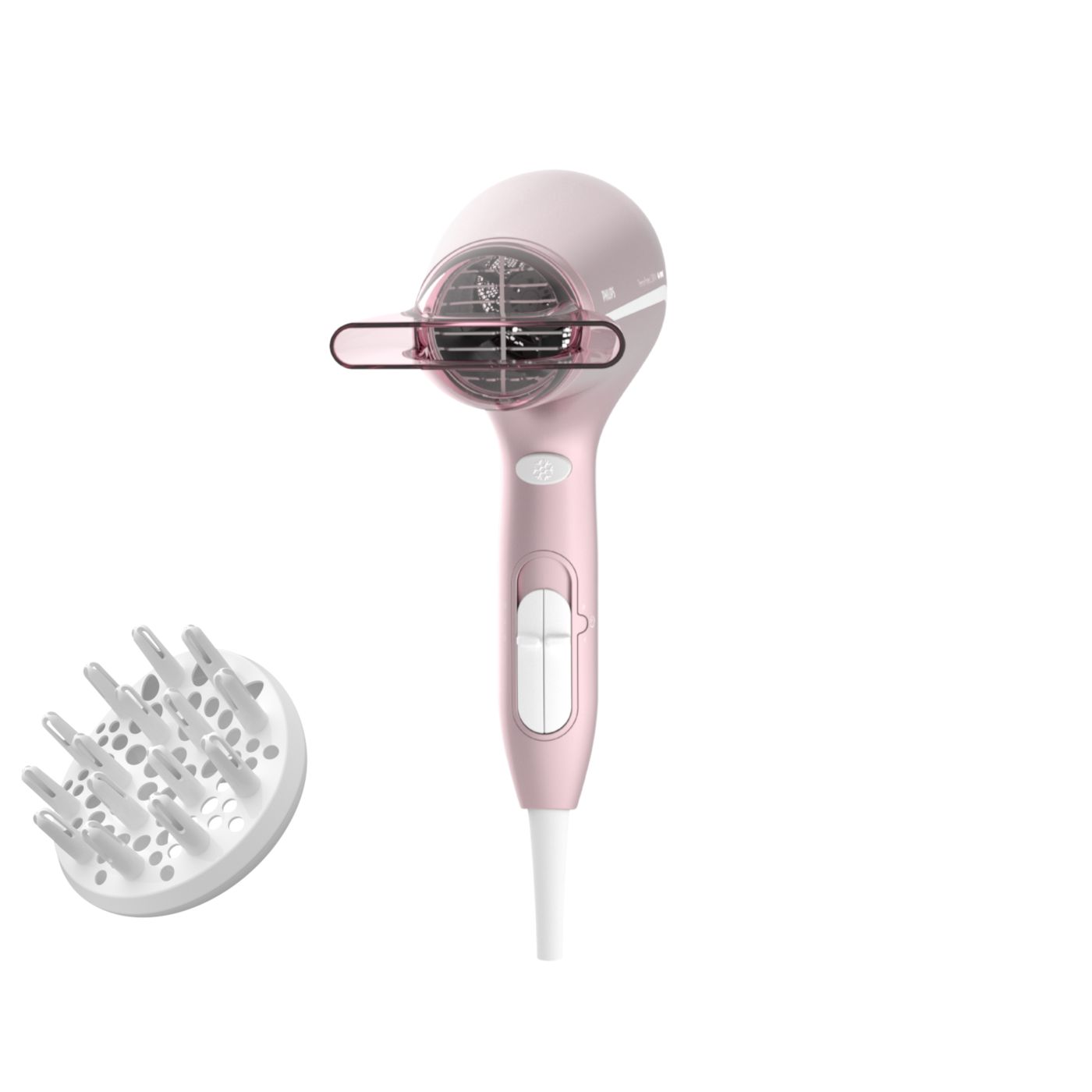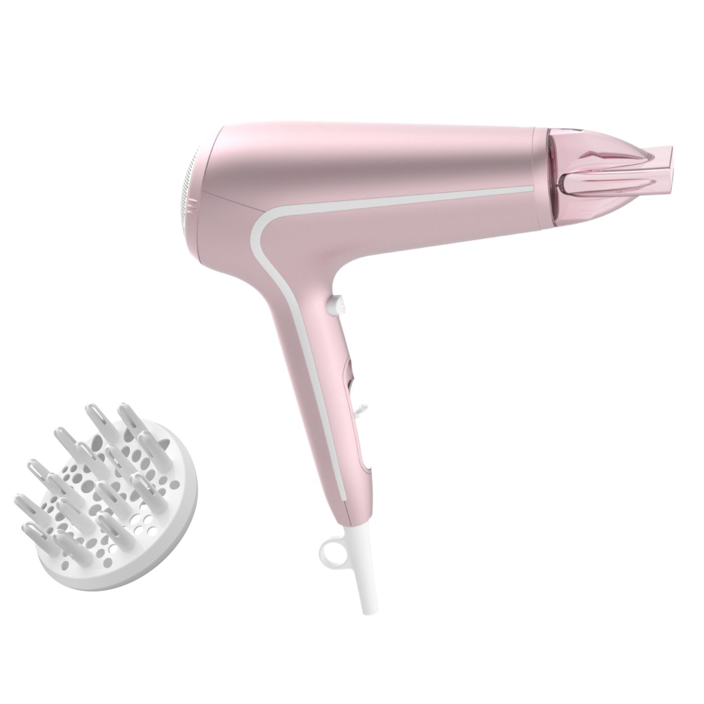Sušilnik za lase predstavlja sodoben in prefinjen pristop k zasnovi. Mehke in tekoče linije ter podaljšani deli prefinjeno izražajo ženstvenost, izpopolnjena zasnova in visokokakovostni materiali pa dokazujejo vrhunsko zmogljivost izdelka.