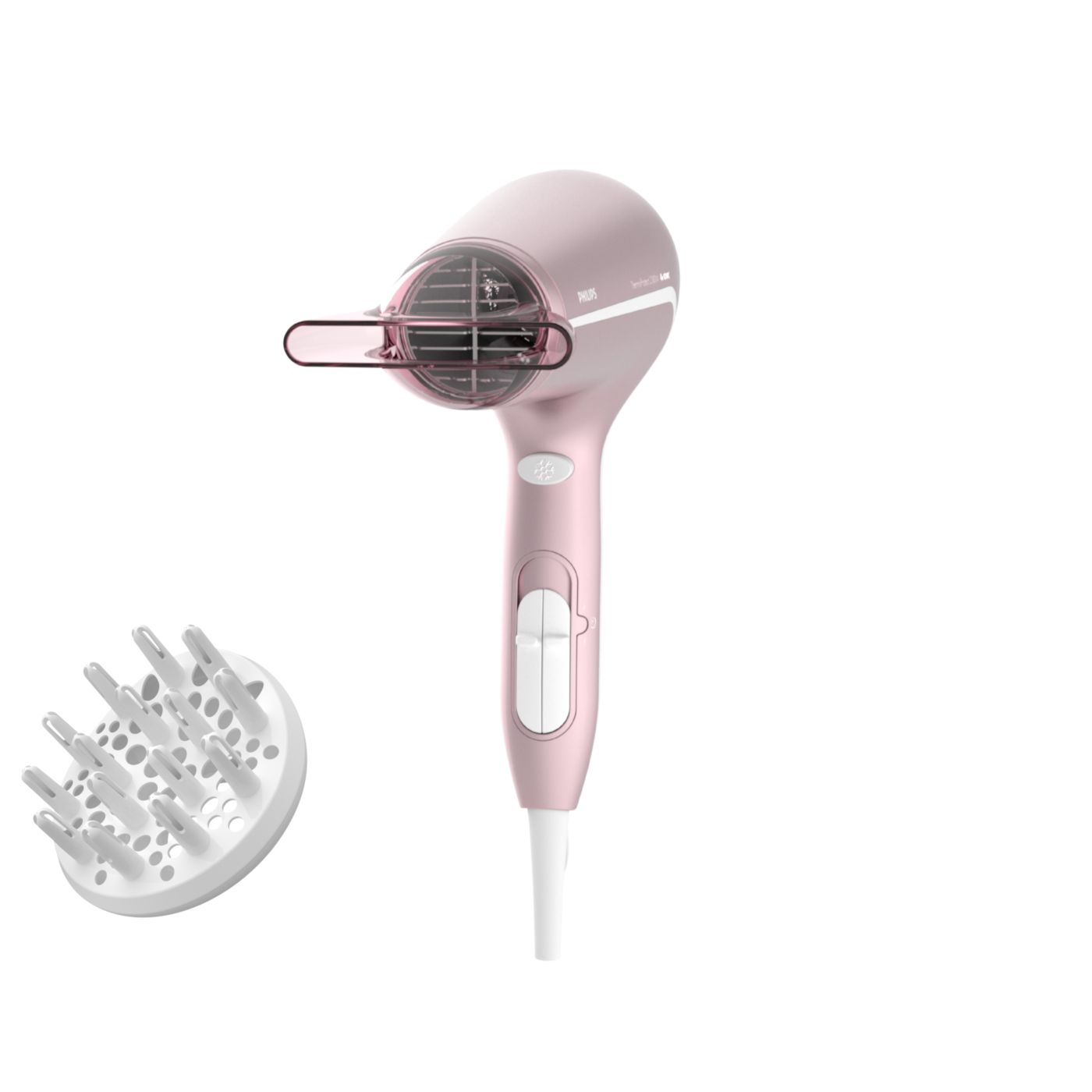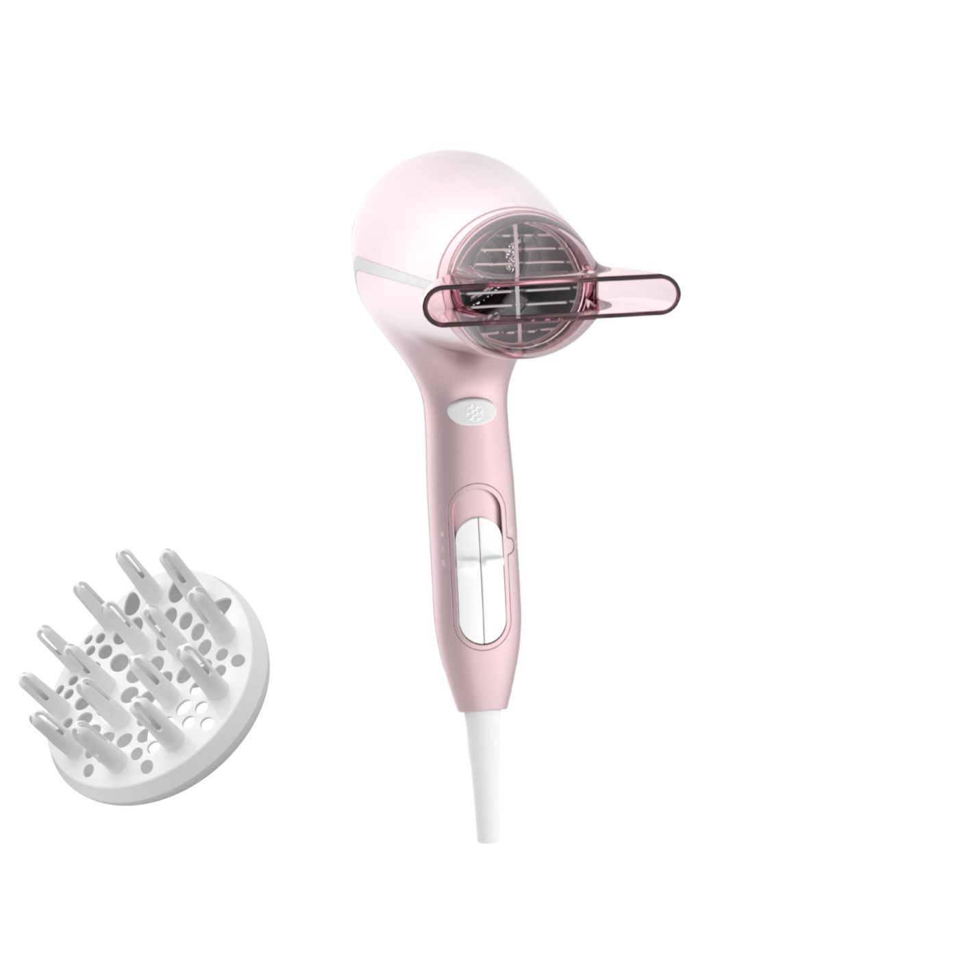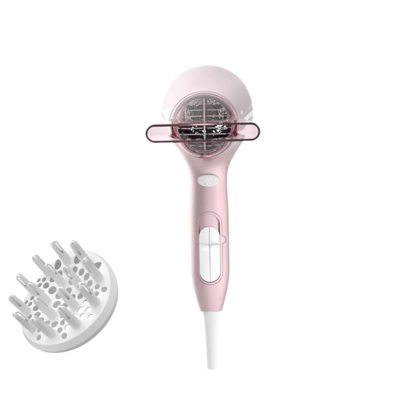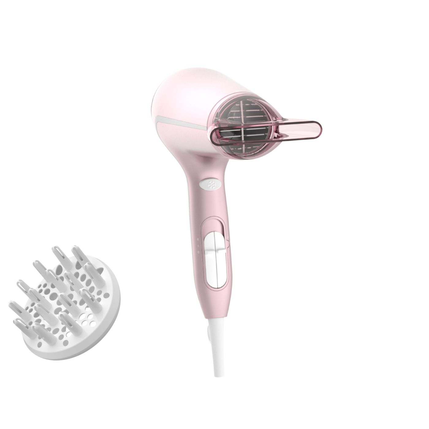 Sušilnik za lase predstavlja sodoben in prefinjen pristop k zasnovi. Mehke in tekoče linije ter podaljšani deli prefinjeno izražajo ženstvenost, izpopolnjena zasnova in visokokakovostni materiali pa dokazujejo vrhunsko zmogljivost izdelka.