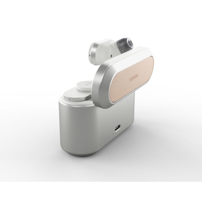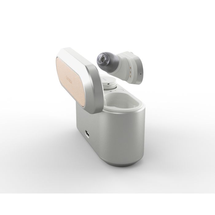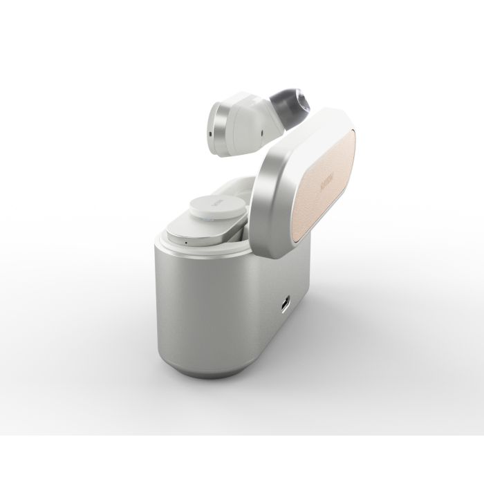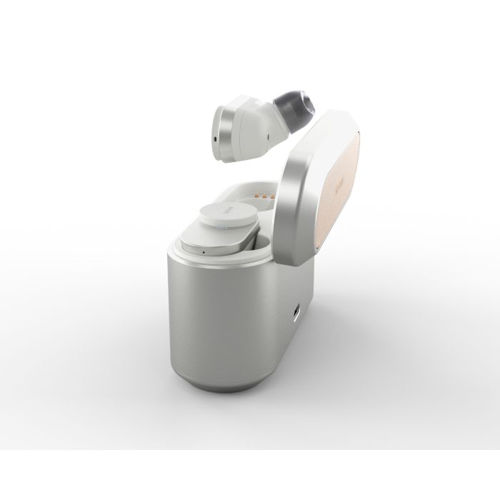 Prepustite se slogu, ki bo tako edinstven kot vaš glasbeni okus. Pristno zasnovo slušalk Fidelio na teh čudovitih ušesnih slušalkah zaznamujejo okrogli detajli iz brušene kovine. Okrasni detajli iz reliefnega usnja Muirhead dodajo pridih mehkobe in prefinjenosti zaobljenemu kovinskemu polnilnemu etuiju.